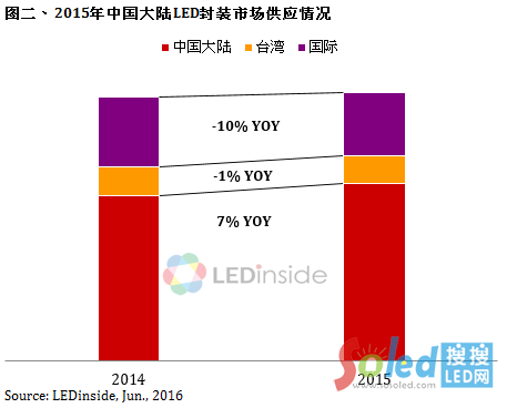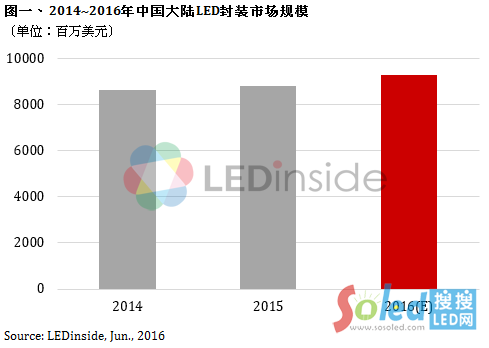 需求回溫,2016年中國大陸LED封裝市場規(guī)模同比增長5%