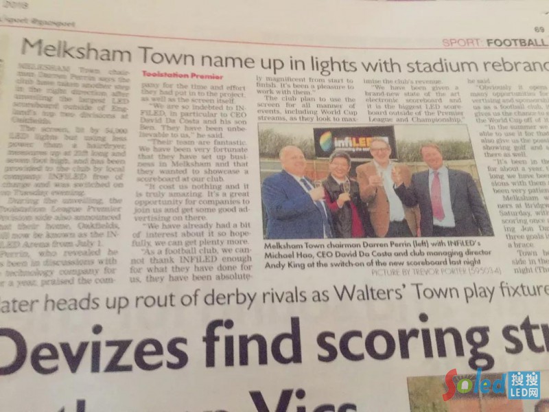 佩林表示:“我們非常感謝INFiLED英國公司,特別是CEO大衛(wèi)達(dá)科斯塔和他的兒子本,他們所完成的對(duì)我們來說是不可思議的。他們的團(tuán)隊(duì)非常棒,他們來到麥爾科山姆,在俱樂部安裝記分牌,我們感到十分幸運(yùn)。這是一個(gè)很好的機(jī)會(huì),希望這次合作能讓我們可以做到雙贏。”
