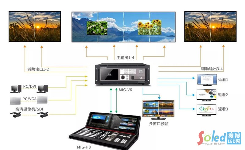 可搭配單臺(tái)或多臺(tái)MIG-V8、MIG-V6、MIG-V5切換臺(tái)使用;