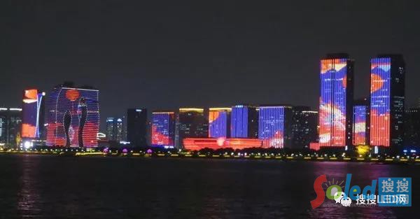 LED顯示屏,在夜景中又扮演著至關(guān)重要的角色,像杭州政府在以杭州大劇院為中心的周圍摩天大樓外立面都加裝了LED燈條屏,實(shí)現(xiàn)錢江新城核心區(qū)為中心,以對岸的杭州奧體博覽中心為補(bǔ)充,向東向西兩翼展開夜景畫卷。G20峰會期間,這些面積異常廣闊的燈條屏上播放參與峰會國家國旗,以及熊貓、京劇等具有中國特色的畫面,讓城市的夜晚絢麗多彩。LED燈條屏的應(yīng)用規(guī)模之大可謂罕見,也為LED屏帶來了新的市場。