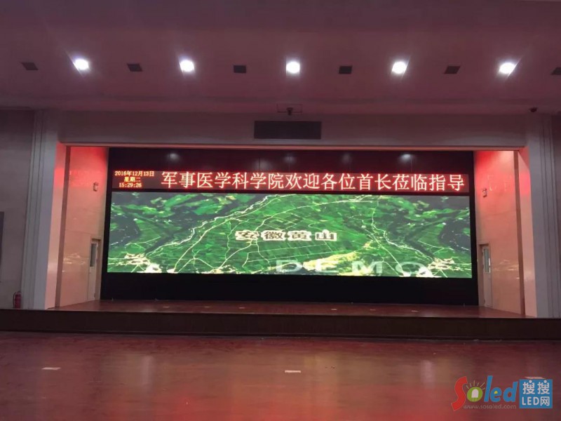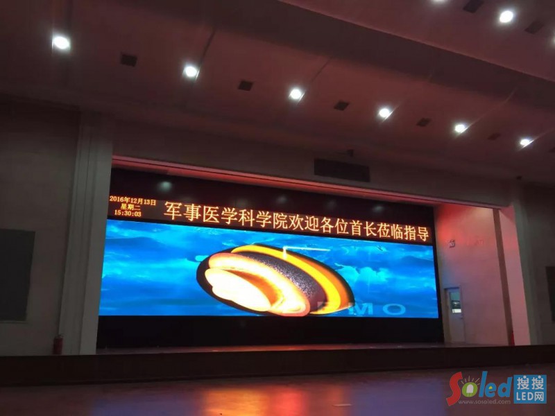 軍事科學(xué)院軍事醫(yī)學(xué)研究院會(huì)議室大屏幕---由北京彩易達(dá)公司承制的麒麟甲系列小間距顯示屏產(chǎn)品提供內(nèi)容顯示服務(wù)。大會(huì)過程中視頻、圖片、報(bào)表,集中展示了軍事科學(xué)院的科研成就?吹讲簧俪晒_(dá)到世界先進(jìn)水平,習(xí)主席很高興,勉勵(lì)大家再接再厲,再創(chuàng)佳績(jī)。