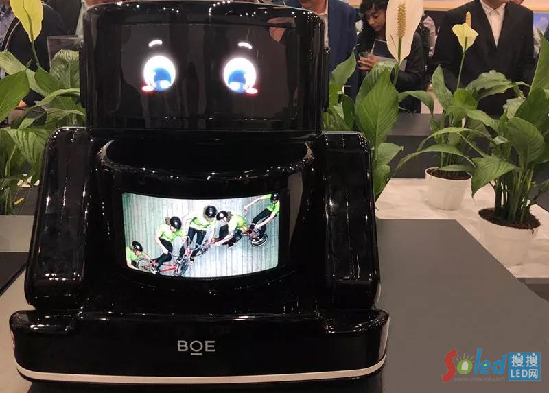 同時(shí),京東方還展示了在頭部和身體分別搭載兩塊5.99英寸AMOLED柔性屏幕的機(jī)器人、12.3英寸S形曲面AMOLED車載顯示屏、7.56英寸折疊平板電腦等多款終端產(chǎn)品,不斷創(chuàng)新柔性顯示應(yīng)用空間。