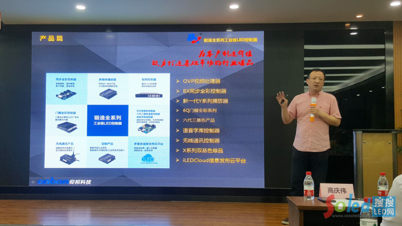 成立至今,仰邦科技一直致力于LED控制器、視頻處理設(shè)備、iLEDCloud信息發(fā)布云平臺(tái)三大業(yè)務(wù),為L(zhǎng)ED顯示屏應(yīng)用領(lǐng)域提供完整的解決方案。是LED控制器領(lǐng)域首家新三板掛牌企業(yè)。高慶偉表示,仰邦人一直以“為客戶創(chuàng)造價(jià)值,致力打造基礎(chǔ)市場(chǎng)的行業(yè)爆品”作為自身的產(chǎn)品研發(fā)宗旨,為應(yīng)用客戶最實(shí)用性價(jià)最高的產(chǎn)品。隨后仰邦科技董事長(zhǎng)高慶立介紹了旗下主打產(chǎn)品,并著重介紹當(dāng)前所推的OVP視頻處理器,他表示,OVP將全線爆發(fā),而且受到市場(chǎng)的青睞。高慶偉還表示“細(xì)分化,定制化,集成化,網(wǎng)絡(luò)化平臺(tái)化”將是未來(lái)控制系統(tǒng)發(fā)展趨勢(shì)。