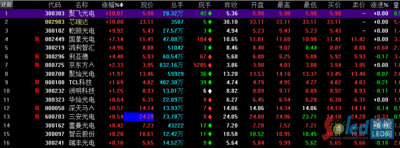 今日Mini LED板塊總體拉升,聚飛光電、乾照光電、芯瑞達(dá)漲停