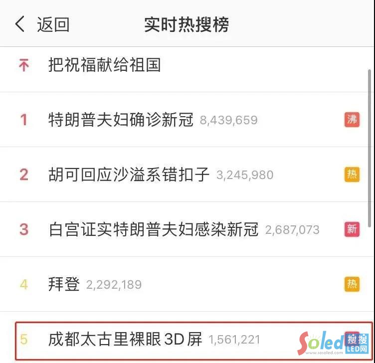 核心提示:聯(lián)建光電為成都太古里盈嘉大廈打造的裸眼3D飛船巨幕震撼點(diǎn)亮,炫酷的黑科技顯示瞬間引爆全國乃至海外媒體轉(zhuǎn)發(fā)評(píng)論,微博實(shí)時(shí)熱搜TOP5,累計(jì)總點(diǎn)擊量達(dá)3.2億。