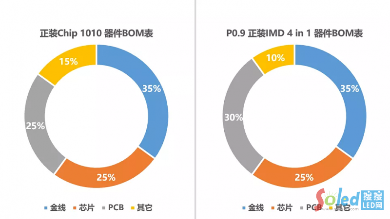 前段工序,芯片投料直接從1010器件采購的芯片中分選寬色域的波長、亮度段用于IMD 0.9器件,在一定產(chǎn)能的基礎(chǔ)上,可與1010芯片采購成本相持平;