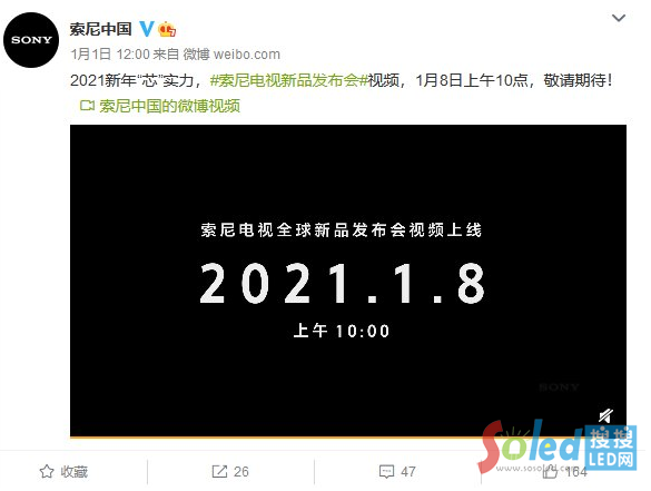 更多索尼電視新品信息還是要關(guān)注1月8日上午10點(diǎn)的索尼電視新品發(fā)布會(huì)。據(jù)悉,本次發(fā)布會(huì)將以預(yù)錄視頻的方式呈現(xiàn),屆時(shí)用戶可在索尼中國官方微博等官方渠道收看。