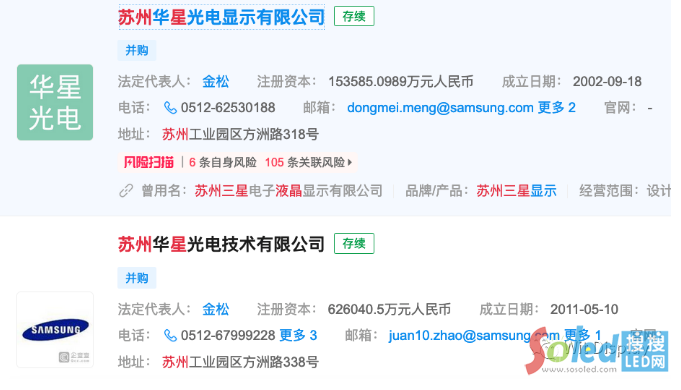 3月12日,蘇州三星電子液晶顯示科技有限公司(面板廠)變更為蘇州華星光電技術(shù)有限公司,蘇州三星顯示有限公司(模組廠)變更為蘇州華星光電顯示有限公司,兩家公司法定代表人為金松。