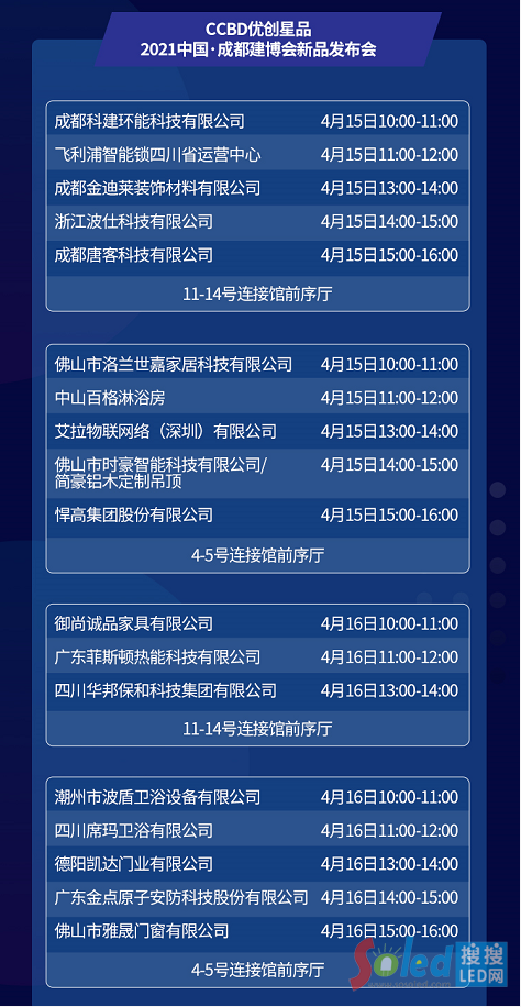 成都建博會(huì)作為中西部最大行業(yè)展會(huì),對(duì)于很多經(jīng)銷商和渠道商而言,這里不僅是一次商貿(mào)對(duì)接會(huì),更是一場(chǎng)行業(yè)新品發(fā)布會(huì),行業(yè)品牌都會(huì)選擇展會(huì)平臺(tái),發(fā)布新品爆款。展會(huì)組委會(huì)將聯(lián)合18家參展品牌企業(yè)舉辦“CCBD優(yōu)創(chuàng)星品——2021中國(guó)成都建博會(huì)新品發(fā)布會(huì)”,為市場(chǎng)和用戶揭曉大家居建裝市場(chǎng)所涌現(xiàn)出的一系列新產(chǎn)品、新方案、新技術(shù),助力展商和觀眾之間實(shí)現(xiàn)合作。