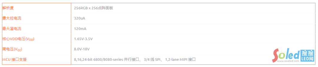 此外, SSD2363支援 320uA 源電流和 120mA 灌電流,標(biāo)志著高亮度 PM-MicroLED 顯示技術(shù)取得突破。該產(chǎn)品支援24-bit并行接口、SPI接口、MIPI接口,能實(shí)現(xiàn)高速數(shù)據(jù)傳輸,顯示更多復(fù)雜的內(nèi)容。產(chǎn)品具體規(guī)格如下: