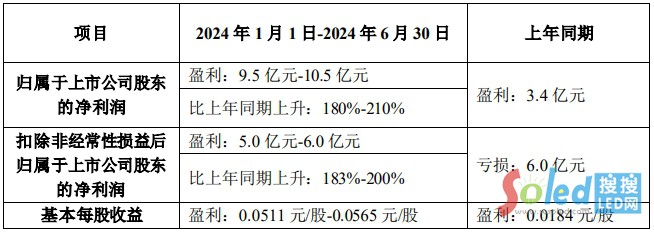 TCL科技預(yù)計(jì),公司上半年實(shí)現(xiàn)歸母凈利潤(rùn)9.5~10.5億元,同比增長(zhǎng)180%~210%;扣非歸母凈利潤(rùn)同比扭虧為盈。