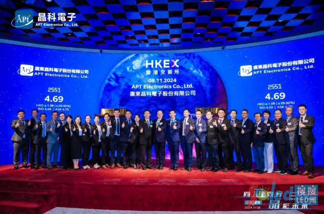 11月8日,廣東晶科電子股份有限公司(以下簡稱“晶科電子”)成功在港交所上市,股票代碼2551.HK。截至午間收盤,晶科電子上市首日大漲45.43%,報5.250港元/股。