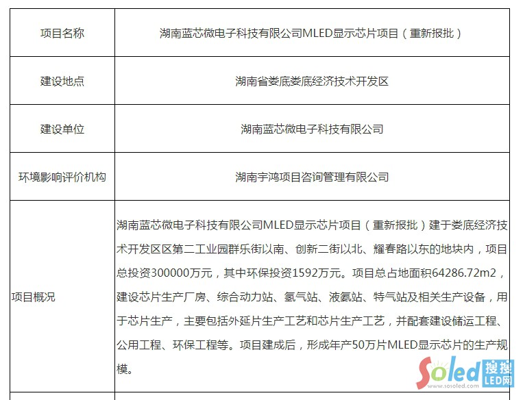 湖南藍(lán)芯微電子科技有限公司MLED顯示芯片項(xiàng)目(重新報(bào)批)環(huán)境影響報(bào)告表