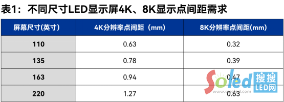 100英寸以上的大尺寸戶內(nèi)顯示中點(diǎn)間距直接決定畫面清晰度,163英寸屏幕實(shí)現(xiàn)4K(3840×2160)分辨率需P0.94mm間距, 8K(7680×4320)分辨率則需P0.47mm。目前主流廠商通過倒裝芯片與微米級(jí)COB技術(shù),已將點(diǎn)間距降到0.9mm以下,其中雷曼光電等企業(yè)實(shí)現(xiàn)P0.47mm量產(chǎn),推動(dòng)4K、8K超高清顯示在指揮監(jiān)控、商用會(huì)議、家庭影院等全場景落地。