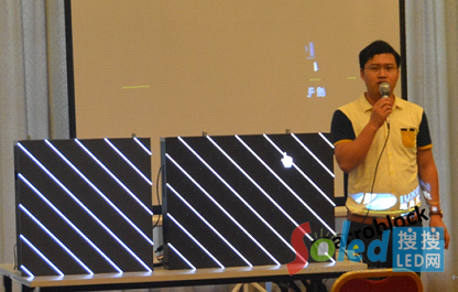 圖三、路升光電銷售總監(jiān)張華斌介紹中、高階P3、P4產(chǎn)品,強(qiáng)調(diào)顯示效果卓越