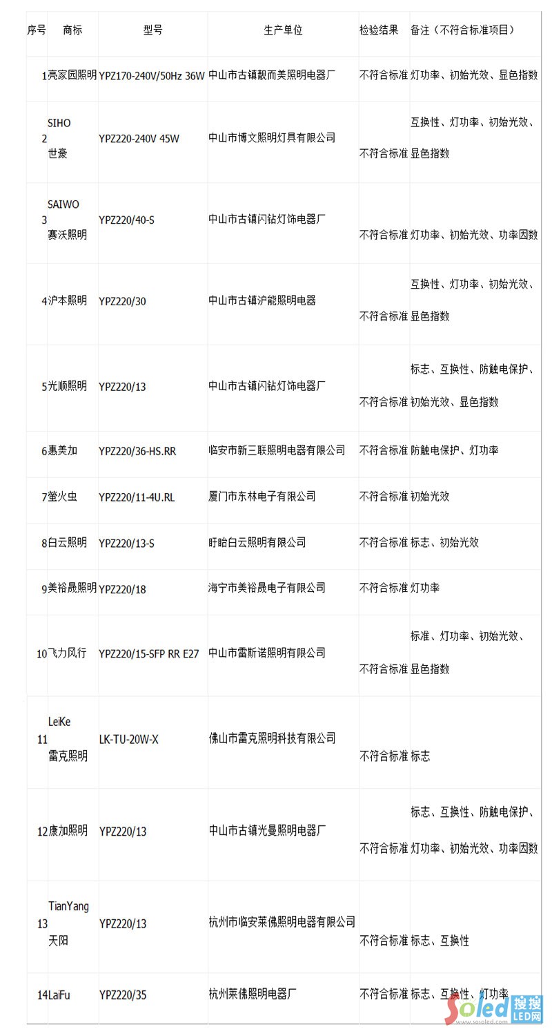 不達(dá)標(biāo)節(jié)能燈存七大隱患 14品牌半數(shù)來自中山