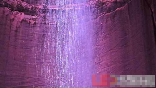 位于美國田納西州查特怒加市觀景峰地面以下1200英尺(366米)處的紅寶石瀑布是美國最大最深的地下瀑布之一,水流落差達145英尺(約44.2米)。在紅寶石瀑布所在的紅寶石巖洞中,充滿了各種奇異的天然巖洞景觀,而現(xiàn)在多彩的LED燈的運用則更讓巖洞充滿了奇幻的氛圍,讓人更加感嘆大自然的神奇!當不同色彩的LED燈光照向飛流直下的瀑布時,不禁會讓人感到置身于一個天外的世界一般。