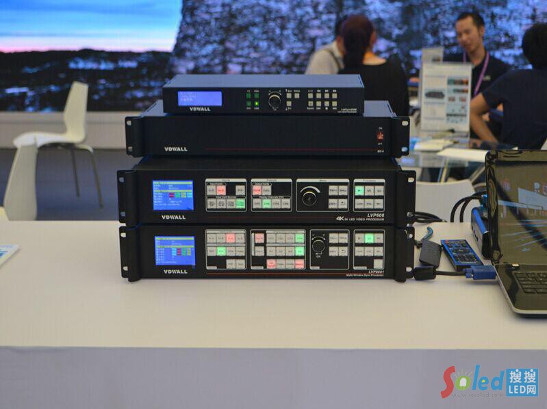 唯奧視訊此次展出的產(chǎn)品包括:4K2K處理器(LVP608)、新切換臺(LVS600)、工程機(LVP505)、新版LVP605、矩陣拼接器(LVP8601)、U盤播放器(LedSync850M)等產(chǎn)品。值得一提的是,展位現(xiàn)場36㎡的4K顯示屏由1臺LVP608全程控制。LVP608支持單物理接口HDMI1.4或DP1.2接收4K2K高速數(shù)字信號,可實現(xiàn)4K2K超高清底圖點對點同步顯示,超高清底圖上開PIP/PBP,任意窗口圖像可跨屏漫游;超高清視頻(4K2K)、高清視頻(1080P)和標清視頻輸入信號源間可進行任意的快速無縫切換或淡入淡出切換,圖像平鋪、開窗、疊加、融合和一鍵調用多種切換模式等功能,充分展示了LVP608的強大視頻處理能力和大視野LED顯示屏的震撼顯示效果。