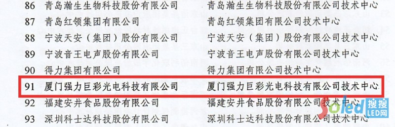 核心提示:日前,國家發(fā)改委、科技部、財政部、海關總署和國家稅務總局聯合簽署公告,將廈門強力巨彩光電科技有限公司技術中心確認為國家認