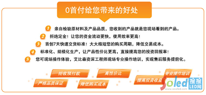 第六、艾比森實(shí)行“零首付”的意義,還在于讓“零首付”變成行業(yè)的游戲規(guī)則。我們深信,當(dāng)“零首付”變成行業(yè)的游戲規(guī)則的時(shí)候,受益的一定是客戶(hù)。如此,就讓那些騙子公司見(jiàn)鬼去;讓那些等米下鍋的個(gè)體戶(hù),經(jīng)受一次考驗(yàn);讓客戶(hù)對(duì)LED更有信心!