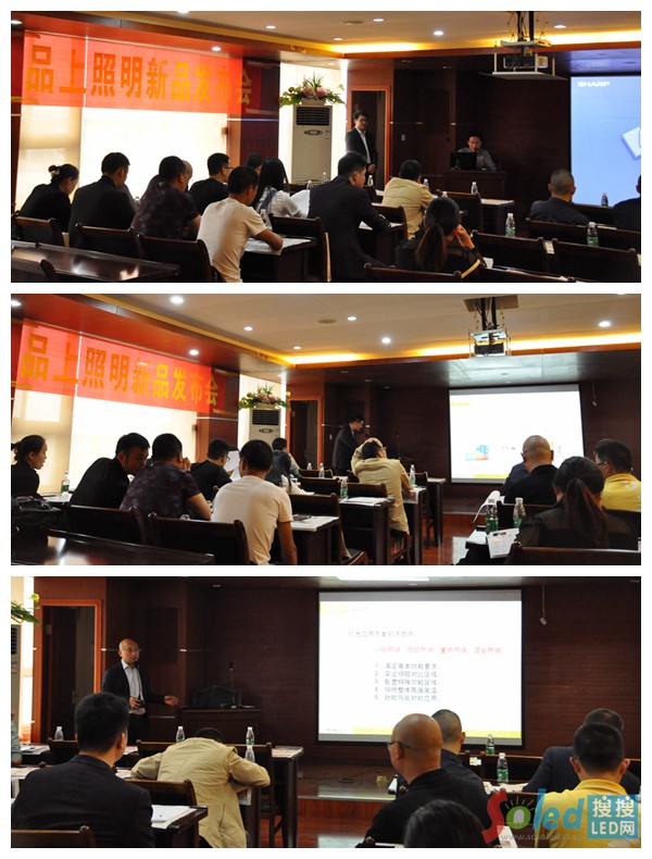 (上圖:品上照明四川運營中心總經(jīng)理蘇丹致辭;中圖:品上照明西區(qū)大區(qū)總監(jiān)李樹彬做新品推介;下圖:品上照明四川運營中心渠道部經(jīng)理蔡濤介紹活動內(nèi)容)