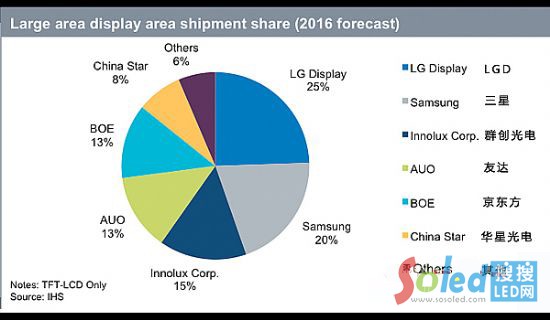 IHS:預(yù)計(jì)2016年大型顯示器出貨下降,出貨面積及尺寸增加