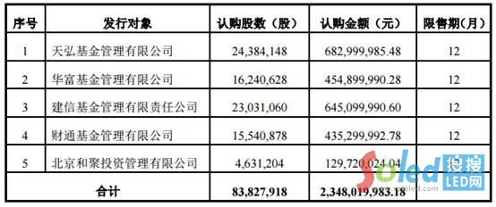 木林森5月26日發(fā)布《木林森股份有限公司非公開發(fā)行股票發(fā)行情況報告暨上市公告書》,公司本次非公開發(fā)行股票數(shù)量為83,827,918股,發(fā)行價格為28.01元/股,募集資金總額為2,348,019,983.18元,募集資金凈額為2,315,739,400.00元,發(fā)行對象均以現(xiàn)金認購本次發(fā)行的新股。