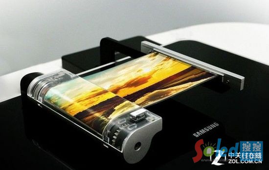 三星展出的5.7英寸OLED屏幕,分辨率為1920×1080,像素密度(PPI)達(dá)到386,最令人驚訝的是這款屏幕可以像卷軸一樣被卷入一根金屬柱中,該屏幕厚度為0.3mm,重量只有5克,曲率達(dá)到10R,但是現(xiàn)場(chǎng)展示產(chǎn)品未安裝觸控層,加入觸控層將會(huì)對(duì)厚度和彎曲程度產(chǎn)生一定影響。另一款5.7英寸分辨率為2560×1440的OLED屏也被在現(xiàn)場(chǎng)展示,該屏幕厚度為0.3毫米,像素密度(PPI)為551。
