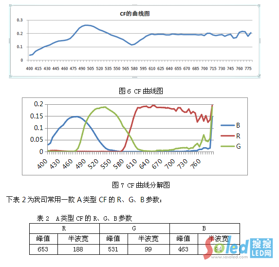 下表2為我司常用一款A類型CF的R、G、B參數:
