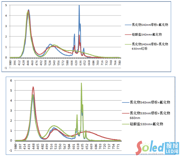 實際應用中,氟化物常搭配氮化物綠粉應用在高NTSC需求(NTSC≥85%)的LED產品上。