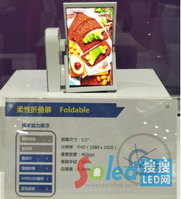 此外,AMOLED柔性其他應(yīng)用形態(tài)如卷曲屏、折疊屏等也都集中亮相。卷曲屏采用了卷軸式設(shè)計(jì),其厚度僅0.2mm,輕薄如紙,可全部卷收至卷軸上,卷曲屏的開發(fā)將柔性屏輕薄、可彎可卷的特性體現(xiàn)到極致。在展會現(xiàn)場和輝光電還展出了一款5.5寸的AMOLED折疊屏,屏幕厚度僅為0.2mm,彎折半徑為3mm,可完全對折,可以說是真正意義上實(shí)現(xiàn)了手機(jī)折疊的愿景,也為下一代折疊類手機(jī)的實(shí)現(xiàn)引領(lǐng)了方向。