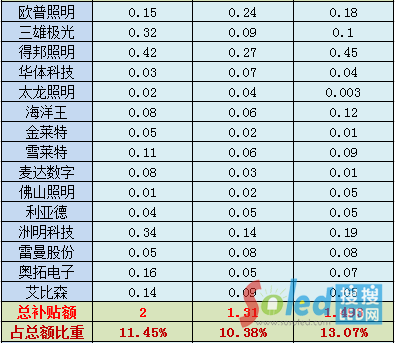 另外,就是LED下游應用行業(yè)。15家下游應用企業(yè)2017年所獲補貼總額為2億元,占補貼總額的11.45%,無論是從補貼總額,還是在LED行業(yè)總補貼額中的比重來看,相較2016年均有所增長。