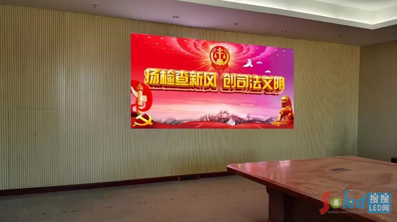 聯(lián)建光電為鄂爾多斯市人民檢察院打造的智慧檢務(wù)LED顯示系統(tǒng)包括五套小間距LED顯示屏,涵蓋PH3mm、PH2.5mm、PH1.6mm等多種型號,總面積達(dá)72㎡,分別安裝于鄂爾多斯市人民檢察院內(nèi)的控申接待大廳、院務(wù)會議室、團(tuán)體接待室、視頻會議室、報告廳等。由于項目意義重大,聯(lián)建光電成立了項目專案小組,施工前期對安裝環(huán)境進(jìn)行了嚴(yán)格、細(xì)致的勘察,根據(jù)不同的應(yīng)用環(huán)境、用途制定了不同的LED顯示安裝方案。在間距選擇方面,甲方在場景較大且觀看距離較遠(yuǎn)的報告廳選用了聯(lián)建光電規(guī)格稍大的P3產(chǎn)品;在場景適中且觀看距離一般的控申接待大廳、院務(wù)會議室、團(tuán)體接待室則選用了聯(lián)建光電規(guī)格適中的P2.5產(chǎn)品;而在場景緊湊的視頻會議室,考慮到近距離觀看無顆粒感的項目要求,則選用了間距更小的P1.6產(chǎn)品……為用戶制定了性價比最高、最適用的智慧檢務(wù)LED顯示解決方案。
