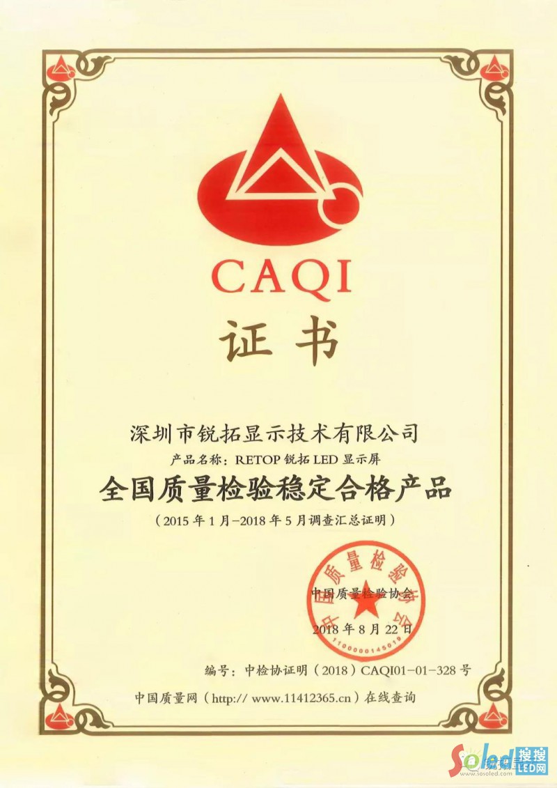 產(chǎn)品以質(zhì)量為本歷來都是企業(yè)的立根之道,也是銳拓顯示多年來不忘初心的信念。同時也是國家與市場對銳拓顯示多年服務(wù)于廣大客戶市場的肯定。