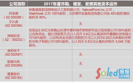 截止2017年底,在A股上市的LED顯示應用行業(yè)骨干企業(yè)有: