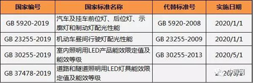 2019年4月4日,國(guó)家市場(chǎng)監(jiān)督管理總局、國(guó)家標(biāo)準(zhǔn)化管理委員會(huì)批準(zhǔn)并發(fā)布《機(jī)動(dòng)車晝間行駛燈配光性能》等21項(xiàng)國(guó)家標(biāo)準(zhǔn),其中照明行業(yè)相關(guān)標(biāo)準(zhǔn)有4項(xiàng),如下: