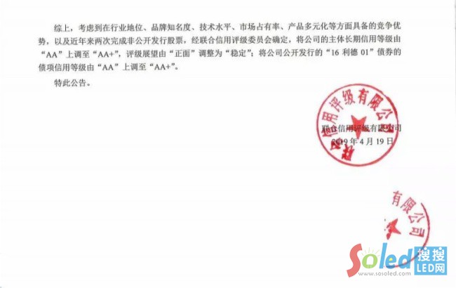 這一調(diào)整是聯(lián)合評級委員會(huì),基于利亞德行業(yè)地位、品牌知名度、技術(shù)水平、市場占有率、產(chǎn)品多元化等方面具備的競爭優(yōu)勢,以及近年來兩次完成非公開發(fā)行股票等情況綜合評定的結(jié)果。