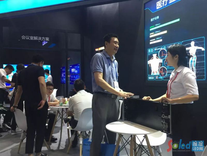 易事達(dá)此次受邀參展,共帶了三款“神器”,首先是這款110英寸全真電視,這款電視是由16個(gè)VE P1.2箱體組成,像素高達(dá)1920*1080;箱體16:9比例,可輕松拼接人眼觀看黃金比例。