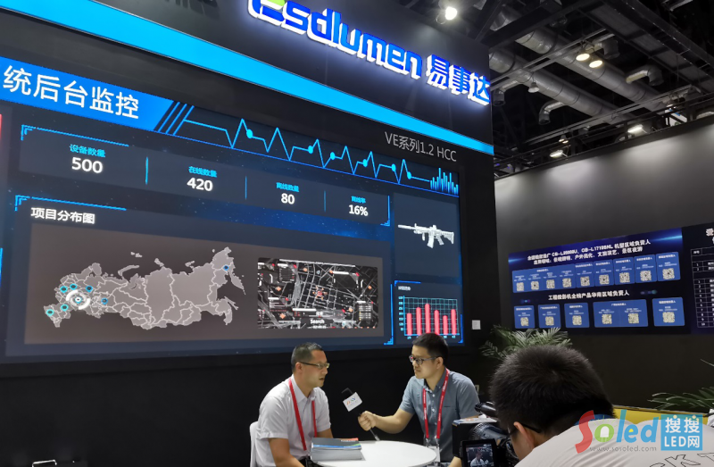 張秋平向我們介紹了易事達(dá)在展會(huì)現(xiàn)場(chǎng)主推的三款“神器”,分別是110英寸全真電視,它是由16個(gè)VE P1.2箱體組成,像素高達(dá)1920*1080;箱體16:9比例,可輕松拼接人眼觀看黃金比例。