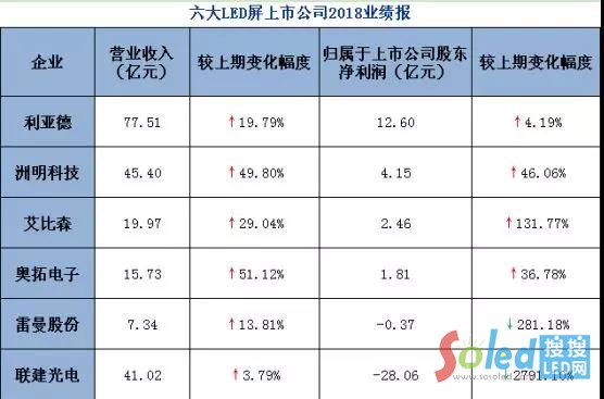 面對(duì)這批大型企業(yè)的進(jìn)入,LED企業(yè)在規(guī)模上的劣勢(shì)相當(dāng)明顯:以2018年六家LED上市企業(yè)業(yè)績(jī)?yōu)槔,六家企業(yè)的營(yíng)業(yè)收入從高到低依次為:利亞德77.51億元、洲明科技45.40億元、聯(lián)建光電41.02億元、艾比森19.97億元、奧拓電子15.73億元、雷曼股份7.34億元。六家企業(yè)營(yíng)業(yè)收入共計(jì)206.97億元,而僅海康威視一家,2018年的營(yíng)業(yè)收入就已經(jīng)高達(dá)498.09億元,相當(dāng)于六家上市企業(yè)營(yíng)收總額的2.4倍。
