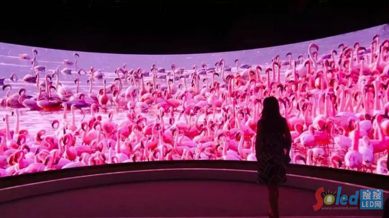7月17日,索尼在北京InfoComm China上展出了8K曲面Crystal LED顯示系統(tǒng)“黑彩晶”。該“黑彩晶”由144個顯示單元聯(lián)合構(gòu)成120度彎曲、縱向2.7米*橫向8米的巨幅精準(zhǔn)影像。安裝時,每個顯示單元之間保持5度安裝角。這是“黑彩晶”首次以曲面形態(tài)在國內(nèi)亮相。