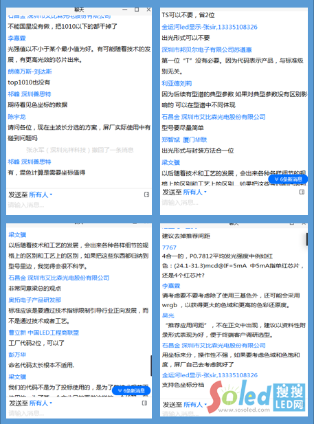 歐司朗、華燦、乾照、三安、兆馳、士蘭明芯等上游芯片企業(yè);國星光電、瑞豐、鴻利智匯、聚飛、希達、朗德萬斯、晶臺、新光臺、晶泰星、東山精密、華聯(lián)等中游封裝企業(yè);利亞德、洲明、三思、洛普、奧拓、聯(lián)建、艾比森、雷曼、青松、奧拓立翔、強力、山西高科、藍普科技、光祥、環(huán)宇藍博、德賽智能、阿爾泰、金運河、藍普視訊、電明、科倫特、格特隆、彩易達、深德彩、嘉德光電、北京科鷹、云智、仰邦、諾瓦、靈星雨、靈信、桐源、?、威創(chuàng)、大華等下游應(yīng)用代表性企業(yè);跨界顯示TCL華星、海信、京東方等80多家企業(yè)200多人,共同出席了討論會。本次表貼系列型譜團體標準討論會參會企業(yè)層次之高(以上市公司和行業(yè)代表性企業(yè)為主),覆蓋行業(yè)范圍之廣(上、中、下游及周邊應(yīng)用),都創(chuàng)下歷年之最,與會專家對于本次表貼系列型譜團體標準牽頭方——中國光學(xué)光電子行業(yè)協(xié)會LED顯示應(yīng)用分會如此勞心費力公開征集意見的作法給予了充分的肯定。