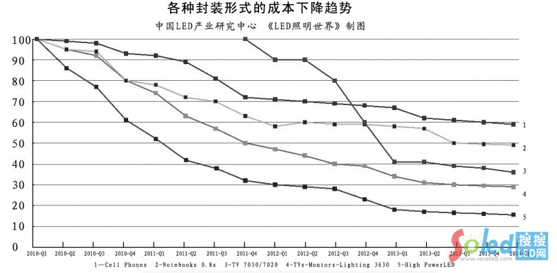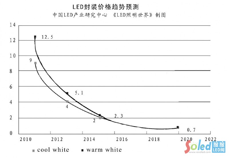 預(yù)測(cè),照明市場(chǎng)將掀起LED封裝新一輪的發(fā)展浪潮。數(shù)據(jù)揭露了2012年的LED封裝市場(chǎng)照明部分稱為最大的應(yīng)用,超過(guò)了TV的背光源市場(chǎng)。LED背光源市場(chǎng)已經(jīng)飽和,這促使多數(shù)頂級(jí)供應(yīng)商們將他們的目光和資源投入照明行業(yè)。LED必定不斷的滲入照明市場(chǎng),由于LED燈的零售價(jià)降低,顧客對(duì)LED總成本和節(jié)約潛能的理解度提高。LED燈具制造商們面臨的激烈競(jìng)爭(zhēng)促使LED價(jià)格的下降。LED封裝價(jià)格在未來(lái)5年將低于當(dāng)前價(jià)格的一半以上。更低的價(jià)格將縮短顧客回收期。盡管主流應(yīng)用將增加,但供應(yīng)商們的利潤(rùn)率最終會(huì)下降。LED燈具已滲透了照明應(yīng)用的多個(gè)領(lǐng)域,例如零售業(yè)和服務(wù)業(yè), LED封裝提供最大機(jī)會(huì)的是住宅部分。這部分的收入在2016年將增近3倍到27億。