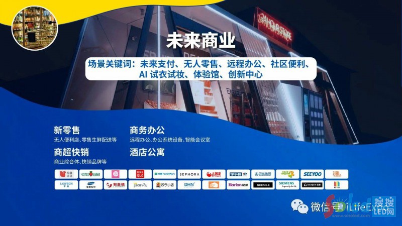 iLife2020未來商業(yè)展區(qū)涵蓋了新零售(無人便利店、零售生鮮配送等)、商超快銷(商業(yè)綜合體、快銷品牌等)、商務(wù)辦公(遠程辦公、辦公系統(tǒng)設(shè)備、智能會議室)、酒店公寓等最新科技與場景展示。場景關(guān)鍵詞:未來支付、無人零售、遠程辦公、社區(qū)便利、廣告運營、體驗館、創(chuàng)新中心。