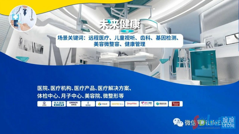 iLife2020未來健康展區(qū)主要展示醫(yī)院、醫(yī)療機構(gòu)、醫(yī)療產(chǎn)品、醫(yī)療解決方案、體檢中心、月子中心、美容院、微整形等健康場景。場景關(guān)鍵詞:遠程醫(yī)療、兒童視聽、齒科、基因檢測、醫(yī)美、健康管理。