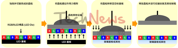巨量轉(zhuǎn)移技術(shù)的概念流程。(Source:科技新報)