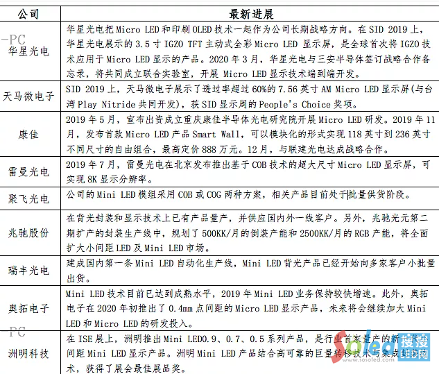 近兩年,華星光電、天馬微電子、洲明科技、兆馳股份、南方科技大學(xué)等深圳骨干積極開展Micro LED顯示技術(shù)的研發(fā)和業(yè)務(wù)布局。不過,受制于技術(shù)瓶頸,除華星光電、天馬微電子和康佳等龍頭有能力直接進軍Micro LED領(lǐng)域外,其余企業(yè)主要從Mini LED領(lǐng)域出發(fā),逐漸加大對相關(guān)技術(shù)的研發(fā)投入。