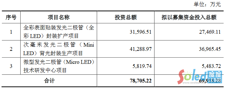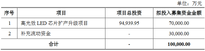 募集說明書顯示,Mini/Micro LED的研發(fā)與制造項目將投入募集資金12億元,GaN基電力電子器件的研發(fā)與制造項目將投入募集資金3億元。