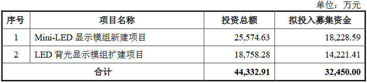 隆利科技本次發(fā)行可轉載擬募集資金3.25億元,投資發(fā)展Mini LED顯示模組和LED背光顯示模組項目。