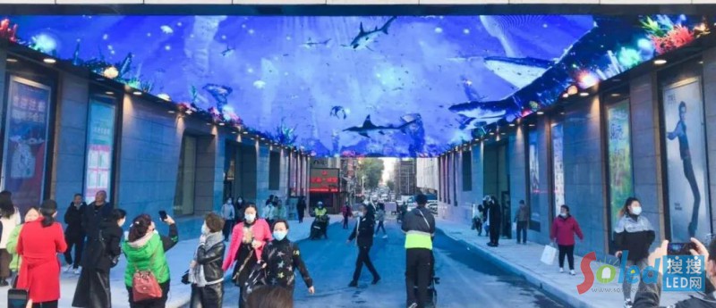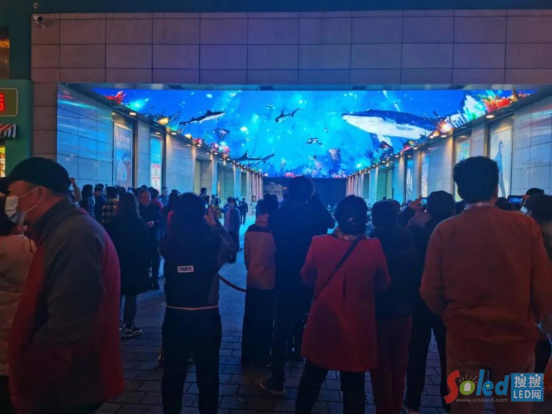 此外,天幕屏營造的視覺效果,還能給人身臨海洋館的感覺。行走在海底觀光隧道,鯊魚、珊瑚等各種奇觀異景躍然眼前,生動有趣。